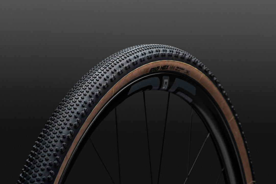 300-1022-031 | 48mm Gravel Hex Carapace Tire - Tan Sidewall |